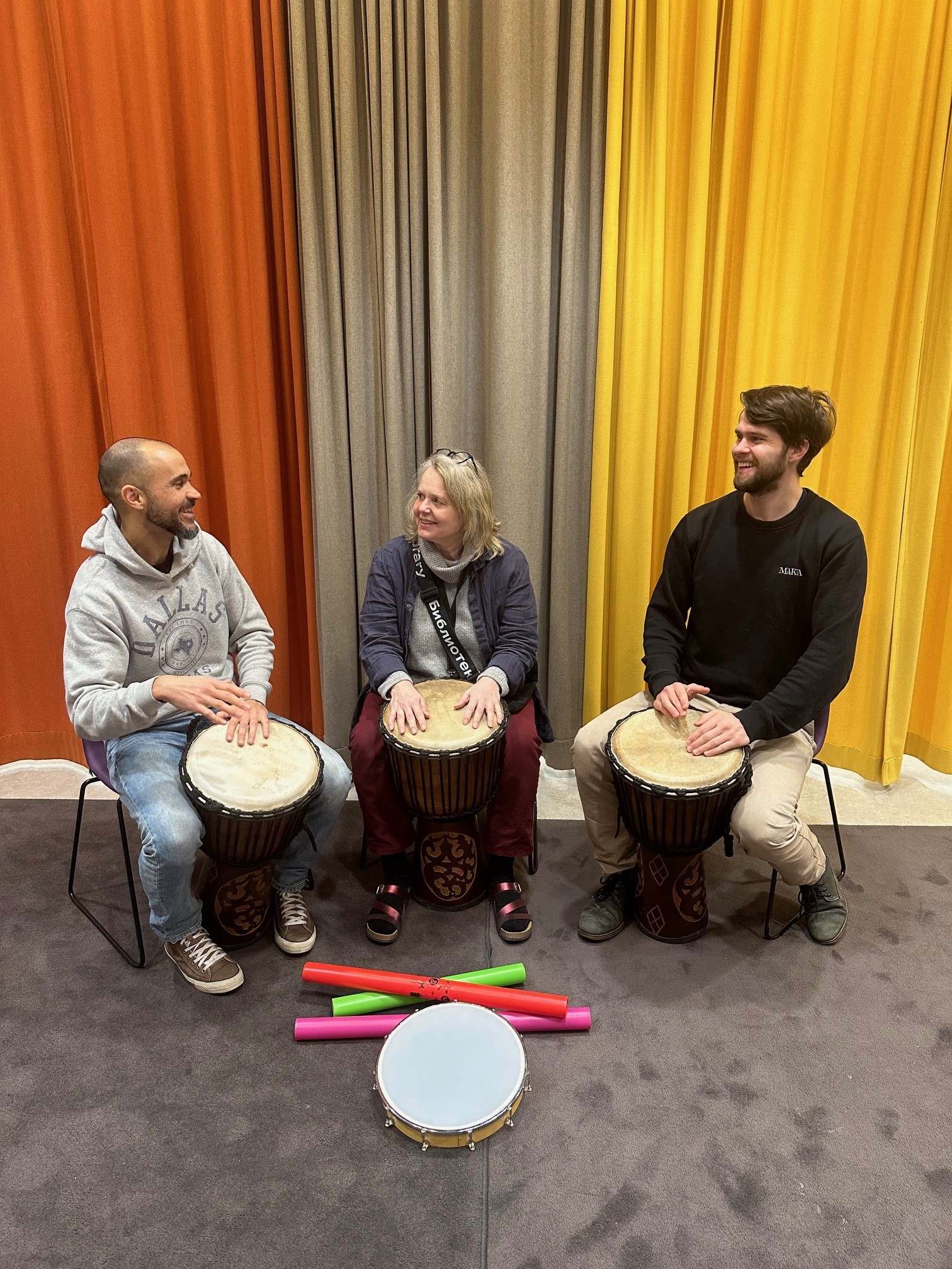 "alt_text": "ihmiset soittavat rumpuja",