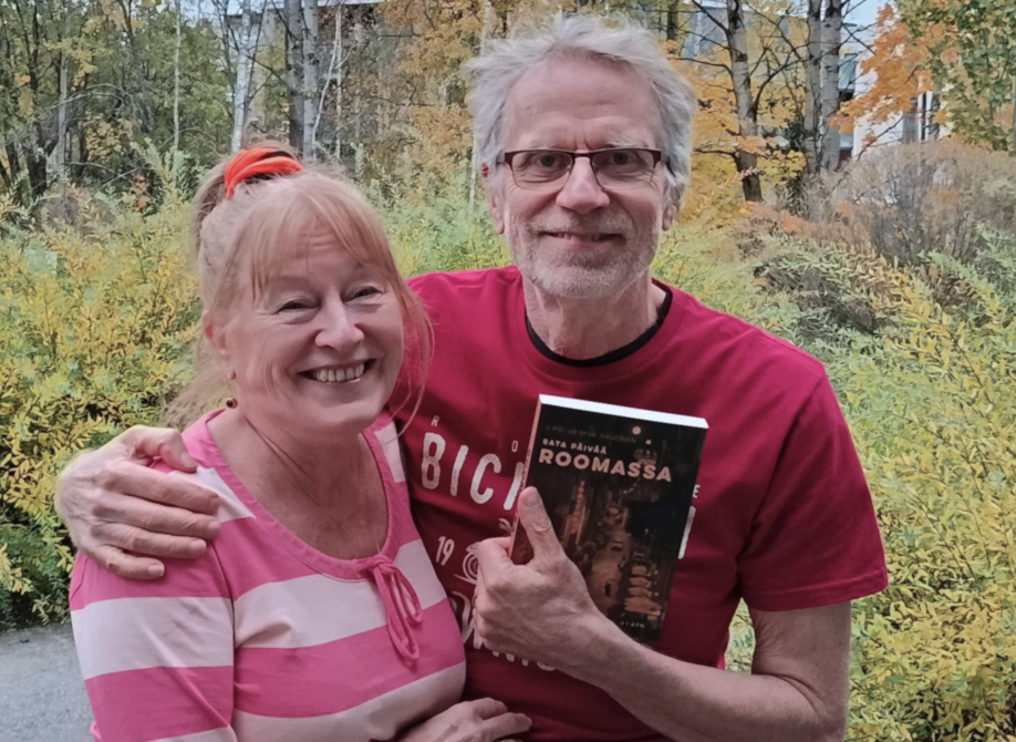 "alt_text": "Ilpo ja Miia Salonen sata päivää Roomassa kirjan kanssa",