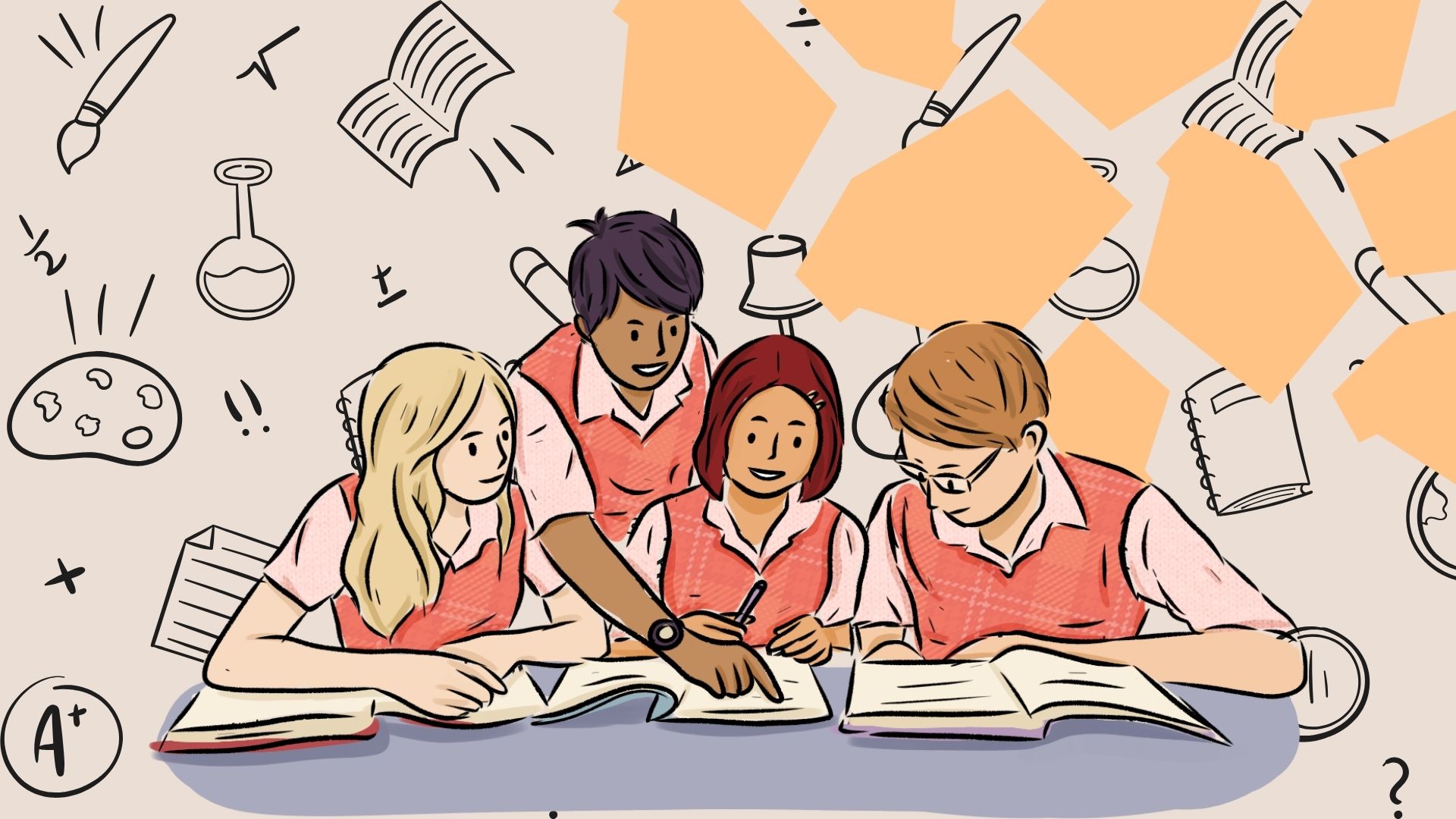 "alt_text": "lapsia tekemässä läksyjä yhdessä",