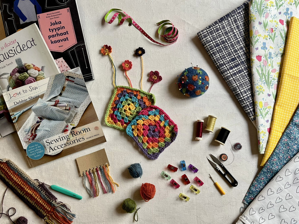 "alt_text": "Kuvassa on käsityöjuttuja",