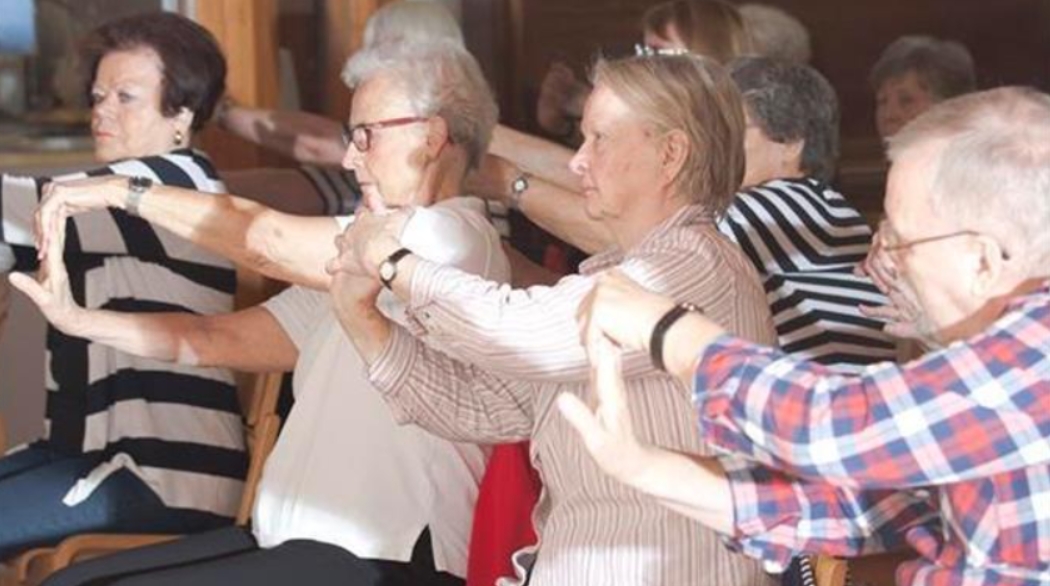 "alt_text": "Senioreita jumppaamassa tuolilla istuen",