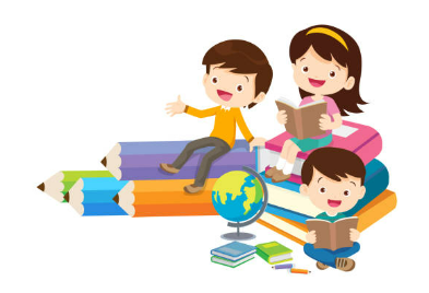 "alt_text": "Kuvassa on lapsia lukemassa kirjoja. Yksi lapsi istuu kynien päällä, toinen kirjojen ja yksi lattialla.",