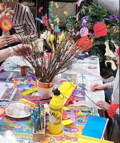 "alt_text": "Kuvassa askarrellaan virpomavitsoja",
